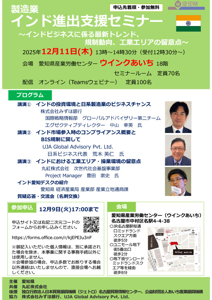 【終了】【2025.12.11(木)】インド進出セミナー(愛知県主催)に登壇しました