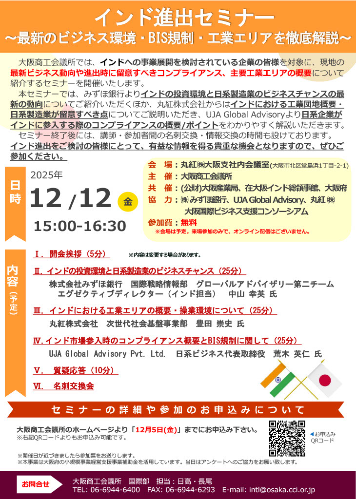 【終了】【2025.12.12(金)】インド進出セミナー(大阪商工会議所主催)に登壇しました